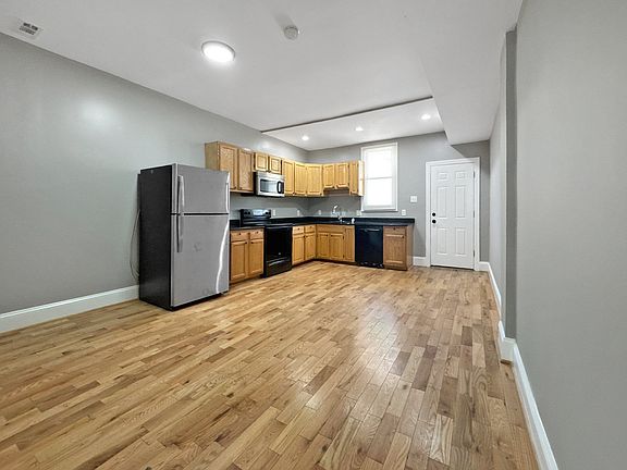 Welcome to 2265 Reisterstown Road, a beautifully updated 5-bedroom, 2-bathroom brick townhome ideally situated in Baltimore's dynamic Parkview community. Property is also available for sale! Remodeled in 2017 and freshly refreshed in 2025, this spacious residence blends timeless character with modern comfort. The main level features gleaming hardwood floors, a generously sized bedroom and full bathroom, and a large eat-in kitchen outfitted with granite countertops, ample cabinetry, and sleek black and stainless steel appliancesperfect for everyday living and entertaining. Upstairs, you'll find four additional bedrooms with plush wall-to-wall carpeting and a fully remodeled bathroom designed for contemporary comfort. The finished basement expands the living space with a bonus living room area, an additional flex room ideal for an office or guest suite, and a walk-out to the rear of the home. Central heating and cooling ensure year-round comfort, while the new roof (2017) and smart updates throughout provide peace of mind. A private rear parking pad for one vehicle adds convenience. Enjoy easy access to the newly redeveloped Parkview Recreation Center, Mondawmin Mall, metro transit, the Baltimore Zoo, Druid Hill Park Lake redevelopment, neighborhood parks, and the Shops at Mondawmin. Don't miss your chance to own this turn-key home in a rapidly transforming area.