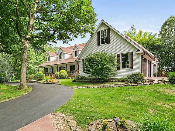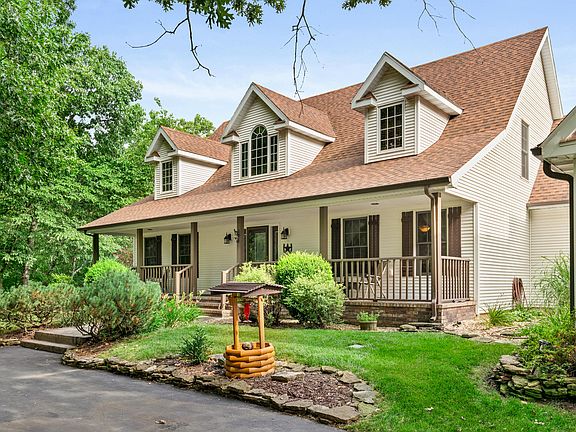 Breathtaking views overlooking the Finley River valley with this one of a kind property! Follow the winding drive through the trees along a private, paved drive to this amazing home on 8 acres. Main level offers foyer with soaring ceilings, living room and sunroom with cathedral ceiling and huge picture windows to enjoy the views!! Nice formal dining room (or office), spacious kitchen has an abundance of cabinets, concrete counter tops, stainless steel appliances, walk-in pantry, and dining area. Master suite has crown molding, fireplace that is see-thru into bathroom with his and her vanities, soaker tub, walk-in shower & closet. There is also a half bath and large laundry room on main level. Upstairs has a full bathroom and three roomy bedrooms; one with a huge walk-in closet. Basement is an entertainer's dream with a huge living area, game area, rec room, wet bar, non-conforming 5th bedroom and a full bathroom. Screened deck out back plus an open deck, patio space and an incredible heated, infinity pool. Home has a four car attached garage plus a detached garage with 5 additional garage spaces AND living quarters above that has a living room, kitchen, full bathroom and bedroom. This home has so much charm been totally updated throughout. Gorgeous landscaping, privacy, seclusion and located only a few minutes south of Rogersville, MO and 20 minutes from the heart of Springfield, this is a MUST see!