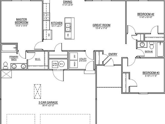 The charming Chariton plan packs a much needed punch that not only meets but exceeds expectations. Enter through the spacious 3-car garage and immediately find yourself walking through the well-appointed laundry room and into a family hotspot meant to make your home the hub of all gatherings. In the open dining and living areas, you can enjoy family meals and meaningful gatherings or even connect with your neighbors on the back patio. The kitchen receives ample natural sunlight through energy-efficient windows, with a large island that is perfect for preparing delicious family recipes or reviewing multiplication tables. At the end of the day, retreat to your well-designed primary bedroom, tucked on it's own end of the home and complete with an en-suite bathroom and walk in closet. The two secondary bedrooms offer added flexibility for family growth, work, and play.