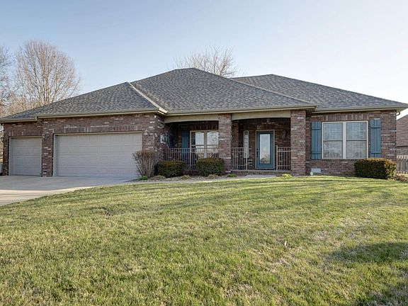 Must see new listing in Carriage Park! Lovely all brick one-level, one-owner meticulously cared-for home featuring over 2,000 square feet of living space, a 3-car garage and a new roof in 2017. With a welcoming front porch & grand entry, the split bedroom floor plan offers 3 bedrooms, 2 baths, a spacious living area with corner gas-log fireplace, a wonderful kitchen with Corian countertops, undercounter lighting & breakfast bar, a large breakfast nook plus a formal dining or office area. Custom touches include hardwood floors, raised ceilings, crown molding, a sound system with components & a fantastic sunroom with outdoor speakers! Beautifully situated on a large 1/3 plus acre, private cul-de-sac lot fenced with mature trees and a park-like setting. Call today for your private showing!You will love the home, the convenient SW Springfield location, community swimming pool and wonderful neighborhood.