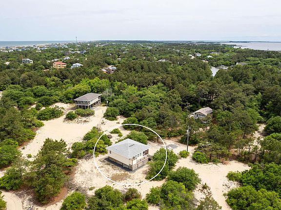 Delightful Beach Cottage hideway built in 2018. This 2 bedroom 1 bath is the perfect spot on a VERY private street yet still convenient out to the beach. Built on short pilings so minimal steps, the home has a spacious great room leading out to a large south-facing screened-in porch with daybed and sitting area. There's also a private west-side sunporch along with outside shower and additional half-bath. Inside you'll find LVT flooring throughout, granite kitchen countertops, and two spacious bedrooms with a shard full bath. Amazing condition and features for the sub $400k price point. Located in the X flood zone. Current owners do rent some summer weeks through Airbnb when not enjoying the home themselves.