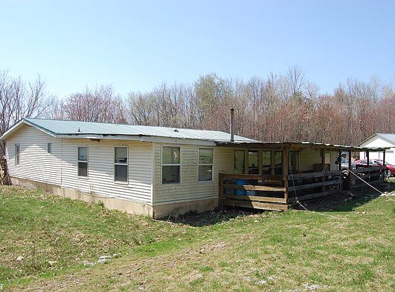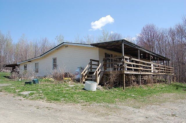 Almost 60 acres of your very own. 2 Pole barns and a shed with a home that needs some TLC; with a drilled well, septic, pole garage, cleared and open land. OGMs do not transfer with the sale. Two covered porches and a deck overlooking the small pond and the mountain scenery. Plenty of privacy since you are the only home.