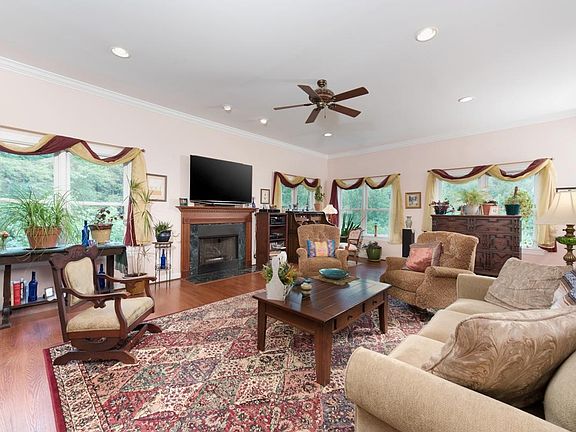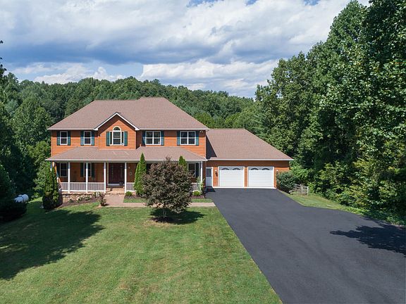 4500 sq. ft. custom home on 35 acres with lush lawns, fields/pastures, barn, fir & hardwood trees, 2 streams & only 5 miles to Lynchburg City. Mountain views. Perimeter partially fenced for horses & livestock; invisible fencing for dogs. Full front porch along with 38x12 deck & patio offer perfect places for relaxing or entertaining AND enjoying unobstructed nighttime views! You will find 10 ft ceilings on main level with gas log fp in Great room leading to dining area & kitchen with curved 10 ft center island. Formal dining room, 6x6 pantry, 11x6 mudroom with sink & shower, laundry room & half bath. Upstairs offers expansive Master suite, 6x6 hall closet, 2 more BRs, full hall bath & walk-in attic storage.