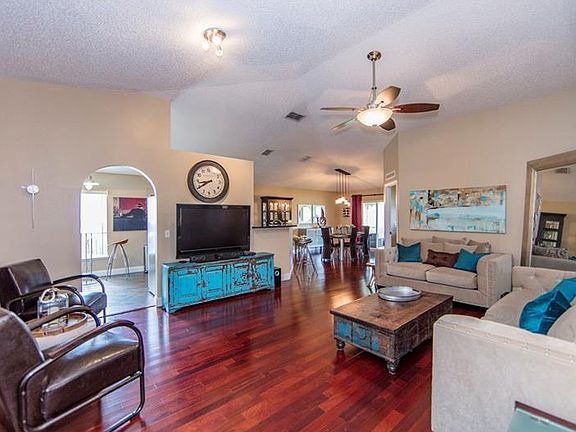 Gorgeous Home in Apopka with no close rear neighbors. Feels Private. Spacious and Turn-Key Ready! Home boasts that it is Well-Maintained. Side Entry Garage and Slate at Front Entry. Open feel with Volume Ceilings and Rounded Arch Ways. Baseboards updated to 5 inch. Engineered Flooring in Cherry throughout Living Room, Dining Room and Master Bedroom. Light Oak Cabinets with Granite Counter Tops are off set by the Glass/Stone/Steel Backsplash in the Kitchen, which also includes Stainless Steel Appliances. There is Breakfast Room Space in the Kitchen, as well a Breakfast Bar. Interior Laundry Area. Large Screened and Enclosed Patio with Slate Flooring is perfect for relaxing or entertaining. Updated Lighting and Fixtures throughout. Living Room includes a beautiful Reclaimed Wood Wall, to off set your decorating style. Both Bedrooms have NEW CARPET. Second Bath Updates include the Glass Backsplash, Modern Lighting and Framed Mirror. Master Bath includes: Garden Tub with Glass Back Splash, Framed Mirror and Glass Back Splash over Double Sinks, Updated Lighting, Porcelain Tile in Slate, Large Walk-in Closet. Roof 2004. Inside A/C 2016, outside unit 2004. Playground in Community. Shopping, Dining, Golf and Nature Parks are Close by. Great Location!