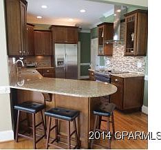 So many upgrades! Must see! All formal areas, living room with stone fireplace, breakfast nook, bar and bar area w/ granite counter tops, wood stained cabinets & stainless appliances, hardwood floors in all living areas, laundry room, downstairs bedroom & full bath, master suite w/ hardwood floors, tile bath w/ double sinks and granite counters, soaking tub and stone shower, 2 additional bedrooms up w/ bath, detached garage w/ workshop, upstairs bonus and bath. Raised patio and fenced backyard.