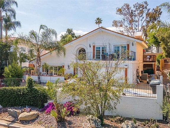 Price enhancement...Don't miss this 3 bedroom 2.5 bath Canyon Lake POOL home with peek a boo views of Canyon Lake! Before entering the home you are met with a cute courtyard with sitting area featuring lots of plants and flowers that showcase this wonderful space. As you enter the home you are met with tile flooring and a very open concept. The step down living room has plenty of room for entertaining and a large beautiful wood burning fireplace. The kitchen/eating area has tile flooring, french doors leading out to backyard patio and side door off of the kitchen leading to side yard. The primary bedroom is located on the main floor with large dual closets with mirrored doors and a full bathroom that features a make-up vanity area and a separate shower and tub. The spiral staircase leads upstairs where you met with a large loft area that has a wet bar sink and some counter space, a great place to entertain as it also has french doors that lead to a front balcony with peek a boo views of the lake. Upstairs has 2 large additional bedrooms, with one of the bedrooms having french doors that open to large backyard deck. The large pool is rectangular in shape, great area for entertaining and is accessed from a staircase due to terraced backyard. From the pool area you can also access the large backyard deck. Close to schools, shopping, 15/215 freeways and all the amenities Canyon Lake residents enjoy!