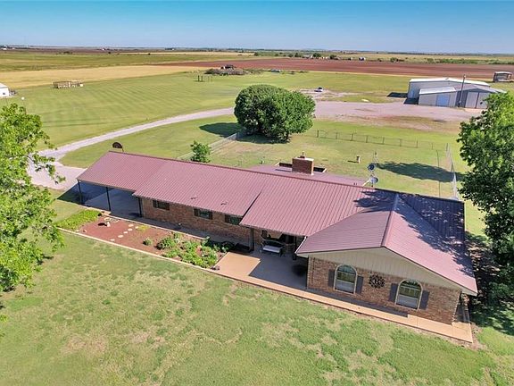 What a rare gem! Beautiful ranch style home with a Commercial barn/building on 12 acres. 3 miles east of Frederick, 35 minutes from Lawton and two hours from Dallas. A long gravel drive way takes you to this spacious four bedroom two bath home. Large open living room area with hardwood flooring and a pellet stove fireplace. The kitchen has tile flooring and formal dining room access. A large laundry room is attached to the kitchen. Bedrooms are good size with carpet flooring. Attached two car garage with storm shelter and large covered carport. Enjoy the sunset under the large covered patio. 8 beautiful pecan trees surround the property. Continue down the gravel drive way where the large barn/building is located. This barn is approximately 7500 square foot and includes four manual lift doors, formal office area, break room, bathroom, insulated parts room, heating and air conditioning option. Loading dock included! Please call to schedule your showing or video walk-thru today!