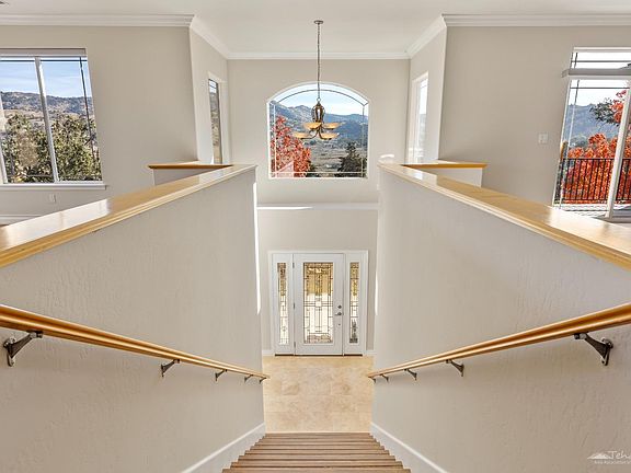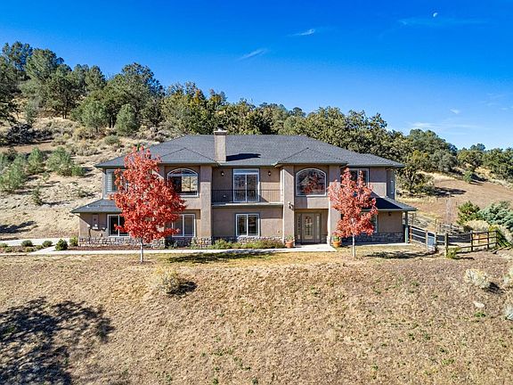 Calling all equestrians & car collectors! This custom Bear Valley Springs estate is Paradise Found. QUALIFY TO ASSUME THE EXISTING VA LOAN AT ONLY 2.75% with an approximate balance of $720,000! Compare that to more expensive listings. You know this home is special upon driving into the tree lined entrance.Enter into the foyer with a dramatic stairway to your upper main living level. From the entry proceed to the right to the private guest suite including a living area with a walk-out patio and fenced dog yard. A spacious bedroom with views to the mountain and a large full bathroom. Proceed to the left into a HUGE 4+ car garage with room for your vehicles and a bonus room for exercise or a private office. Upstairs, experience the open great room with a corner fireplace and front patio for your evening cocktails and to experience the amazing view over BVS! There is also a rear covered back composite patio for your all-season enjoyment. Your chef's kitchen includes knotty pine cabinets, granite counter-tops a huge island and a full-length breakfast bar. Your adjoining dining area accommodates a large table for entertaining. The views to the lower pasture areas and into the valley are extra special. Low maintenance luxury plank vinyl flooring throughout makes this home both pet and family friendly! Past the great room is your comfortable master suite. There is a nice walk-in closet plus built-ins for extra storage. Your master bathroom includes a double vanity, jetted tub and a large stall shower. Down the hallway is your office/den with fiber optic gigabit internet to work-from-home! In 2021 PC magazine named BVS the 2nd best work-from-home city in the USA! Proceed down the hallway to 2 additional nice sized bedrooms. The 3rd full bathroom has a double vanity and more knotty pine cabinets. The laundry room is adjacent and has so many cabinets for all of your storage needs and a wash basin too! This well-designed quality home with lovely accents like coffered ceilings and many built-ins provide space and privacy for everyone. Views from every room with windows galore! New custom blinds throughout plus a new pellet stove for winter warmth! An almost new Solar Peak full house system with 28 panels, 17,800 watts of power plus a 20K-watt hour solar back-up capacity! This system was recently installed and financed through NBT bank with a 0% interest loan approx. $67k loan with monthly payments of $300.55 has covered all electric with savings account! This estate has it all! Step outside to view your 2.89 acre ranch. There is a large, fenced pasture area, and a fenced small court dressage arena. The almost new Castlebrook barn features 3 sand/dg and matted stalls, one currently used as a chicken coop, a large tie and wash area, a 12'x12' tack room and spacious 16'x12' feed room & A full-length overhang provides extra protection. The horse facilities include solar charged perimeter fencing! Hook-up