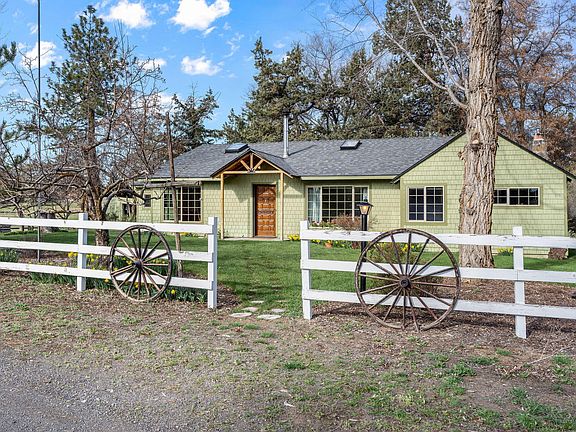 Looking for an adorable Bend farm with that traditional farm feel that has been loved and cared for all along the way? Don't miss out on this one. This 4.19 acre property has three flood-irrigated pastures, a bunk house, a fenced garden area, a stick-built green house, an original barn and a wood working shop with meat cutting room and a detached single-car garage with built-in cabinetry. The 1920 single-level 3 bed, 2 bath farmhouse was added on to in the 80's for a total of 1740SF. A new roof installed in 2023 and a Forced Air system with Heat Pump cooling in 2018. The long driveway is tree-lined as it should be...right? The daffodils are blooming and every window reminds you that you are surrounded by this quaint setting. Property comes complete with a real log-cabin playhouse, horseshoe pit, even a dinner bell.
