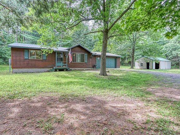 Introducing a 2-bedroom, 1-bath home offering 864 sqft of living space on just over 3 acres in Grand View, WI. The home features a functional layout with a full unfinished lower level for future expansion, a three-season room off the dining area, and a two-car attached garage. The cedar siding adds Northwoods character, while a brand-new metal roof (2024) provides peace of mind. A drilled well and septic system are in place. Additional storage is available with the 18x36 pole building on the property. Partially wooded setting offers a balance of privacy and open space.