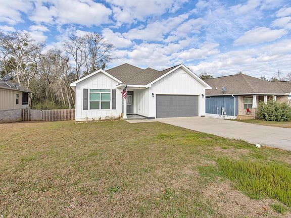 Beautiful home in Silverhill! Great Floorplan with an Open Living, Dining and Kitchen Area Great for Entertaining. Quality Construction by Builder Beach N Bay. 3 Bedrooms & 2.5 Bathrooms with granite counters, custom wood cabinetry throughout. Kitchen with cabinet space for storage, separate pantry, large kitchen Bar and Stainless Steel appliances including an Electric Range, Microwave, Dishwasher, Refrigerator, Washer & Dryer. The living area features a double trey ceiling & recessed LED lighting, the primary bedroom has a single trey ceiling and primary bathroom features a large Walk In Closet, double vanity, garden tub & glass tiled shower. Double attached Ggrage with automatic door, fenced back yard, screen enclosed Rear Patio.