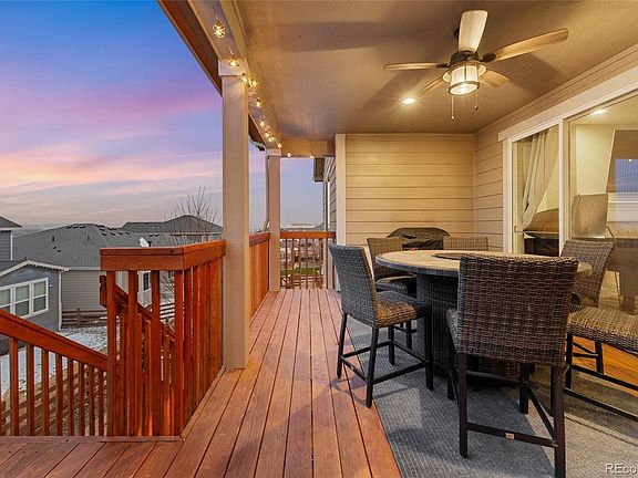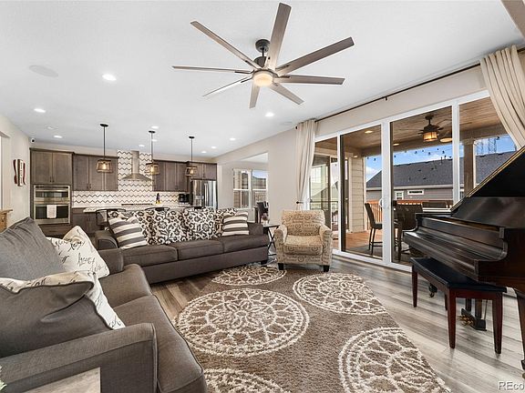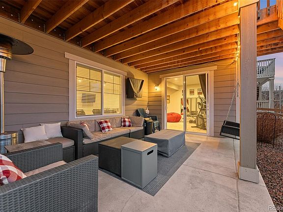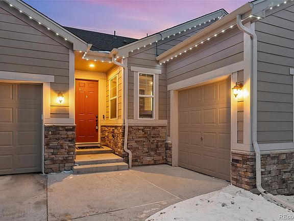 BACK ON MARKET! Appraised over $780,000! CHERRY CREEK SCHOOLS! A ranch in the desirable Copperleaf rarely is available! Only 5 years new with a transferable builder warranty. Entertain year round in fully-fenced grassy yard with 2 covered patios, enjoy a huge walk-out basement with private entrance and no steps. A main-floor primary bedroom, two additional bedrooms and full bath plus laundry are all on main floor for comfort and convenience. A three car garage with electric-car charging plus a new roof, energy efficient windows and appliances are money-savers. Over $150,000 in upgrades & improvements including new roof make this home one of a kind. A beautifully open floor plan with seamless flow between the living room, kitchen, & dining area perfect for dinner parties & everyday living. A spacious chef’s kitchen with walk-in pantry, marble backsplash, stone countertops, gas stove, upgraded appliances, large island & nearby computer work-space with extra storage. The living area with fireplace leads to a large covered patio with a doggy-door, flat-screen TV, ceiling fan, gas grill, fire pit, a grassy backyard ideal for relaxation & play. The primary bedroom retreat is a luxurious space with a barn door leading you to bathroom and walk-in closet with custom storage system. Designed for modern living, equipped with a security & camera system, whole-house surround sound system with in-ceiling speakers in both the living room & entertainment space, & a 136" TV screen & projector in the expansive downstairs living area near fitness area/office. The downstairs features large windows, high ceilings, a designer kitchenette & bar, a private bedroom & full bathroom, all with its own entrance- no steps. The outdoor spaces are impressive with a covered deck, a covered patio & fully fenced lawn, jellyfish lighting & patio lights that set the mood for evening entertaining in style. Enjoy high-end builder upgrades, parks, shopping, golf courses and more!