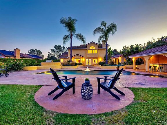 Incredible Olivenhain residence located on highly coveted and rarely available cul-de-sac. Gorgeous & serene park like setting on 1/2 ac lot with lush, mature landscaping & beautiful views of the hills and countryside. Inviting floor-plan with 4 BR upstairs & office plus bonus room on the entry level. Brand new flooring, bathrooms, and kitchen upgrades. Backyard retreat with pool and spa, BBQ center, fire pit, bar/cabana, sauna & detached 170 esf, gym/office. Garage parking for 5 cars. No HOA/Mello Roos!