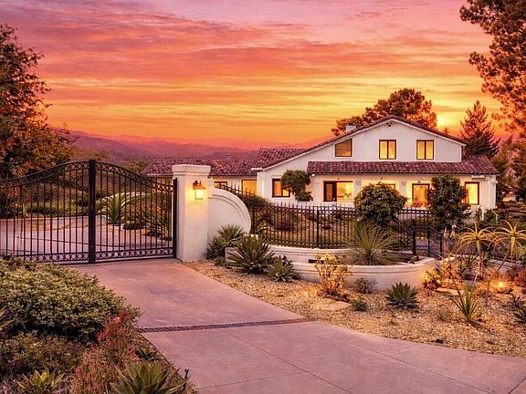 Set behind private gates in the prestigious Cold Canyon neighborhood, this Mediterranean-style estate offers rare privacy and tranquility on nearly two flat, usable acres. Just minutes from Malibu's beaches, Calabasas Commons, Saddle Peak Lodge, and top schools, it blends seclusion with convenience. Newly renovated, the home features natural light, light wood floors, soaring ceilings, and white stone surfaces, creating an elegant, welcoming atmosphere. The open floor plan is perfect for both relaxed living and larger-scale entertaining. The gourmet kitchen boasts a big center island, premium appliances, and a seamless flow to the dining area. The formal living room's vaulted ceilings and oversized windows frame stunning views, while the expansive family room, with wraparound bar and covered patio, is ideal for entertaining. Upstairs, the primary suite offers mountain and treetop views, a fireplace, and private terrace. The spa-inspired bath includes a soaking tub and dual rain-head shower. Three additional bedrooms and a versatile bonus room offer endless possibilities for guests, office, studio or media room. The nearly two-acre grounds feature mature trees, walking paths, and drought-tolerant landscaping with succulents and fruit trees. There's plenty of room to add a pool, ADU, or custom outdoor amenities. A truly meaningful purchase, all proceeds from the sale benefit a 501(c)(3) animal welfare organization. Private. Expansive. Purpose-driven. Opportunities like this rarely come to Cold Canyon.