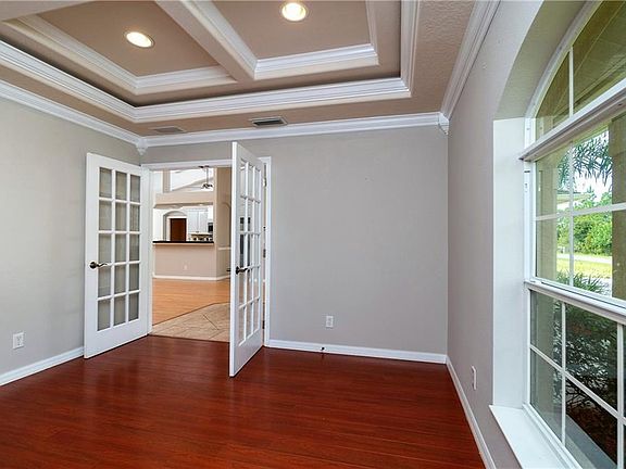 Spacious 3 bedroom, 2 bathroom, 2 car garage with over 1800 square feet of living space. As soon as you enter through double glass pane doors you notice the open floor plan which provides a welcome feeling for friends and family while you entertain in your kitchen. Featuring granite tile counter-tops, stainless steel appliances, Maple wood cabinets, soft close drawers, pantry cupboard and a breakfast nook overlooking the backyard. The Living/Dining room with cathedral ceilings, planter shelving, maple wood laminate flooring and sliders out to the screened lanai. Head through the double French doors to your office/den with beautiful tray ceilings and recessed lighting. Home features the split bedroom concept. Master bedroom is carpeted with lighted tray ceiling and French doors leading outside. The Master bathroom with his/her vanity area, garden bath, large mosaic tiled walk in shower, walk-in closet and linen closet. Two 10 x 14 guest bedroom with carpeting, ceiling fans and one with sliders to the lanai. Full guest bathroom with linen closet in the hall. Walk through the laundry room, with folding station, to the 2 car garage with plenty of shelving space, utility sink, garage door opener and pull-down attic stairs. Head out and relax on your screened lanai. Room in backyard to add a pool. Home located in a quiet neighborhood in North Port and close enough to US-41 and I-75.