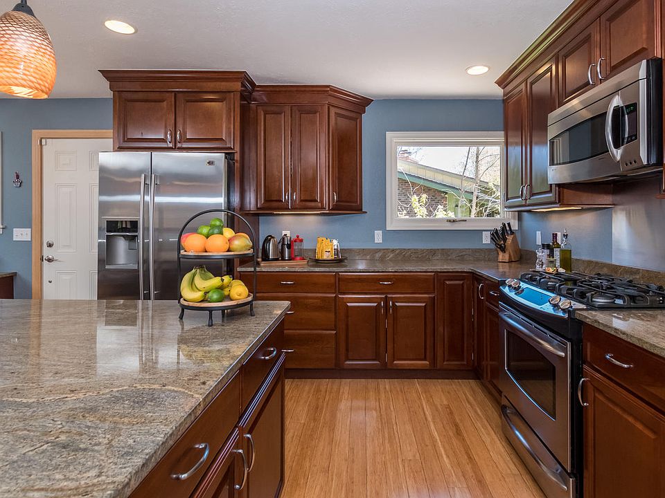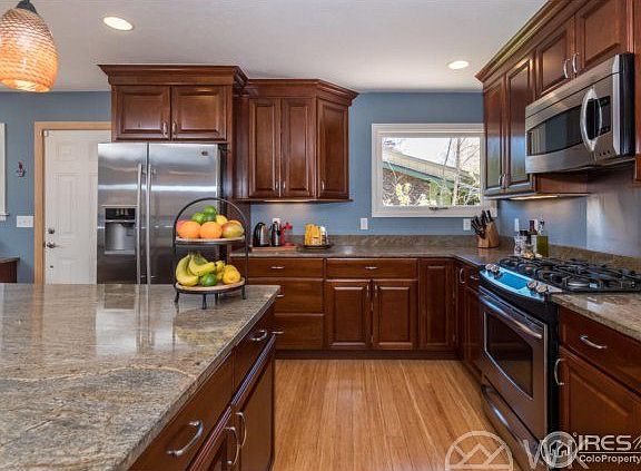 You will love this spacious Parkside ranch home w quality construction throughout.Main level has an open floor plan w tons of natural light,vaulted ceilings,bamboo flrs + great room w FP.Beautiful gourmet kitchen has been completely remodeled w cherry cabinets,granite slab CT + large prep island w wine fridge.1900 SF bsmnt has 2beds,1bath, laundry + family rm w FP. Beautiful backyard w stamped concrete patio-perfect for entertaining. Ideal location close to bike paths,park,shopping + restaurants