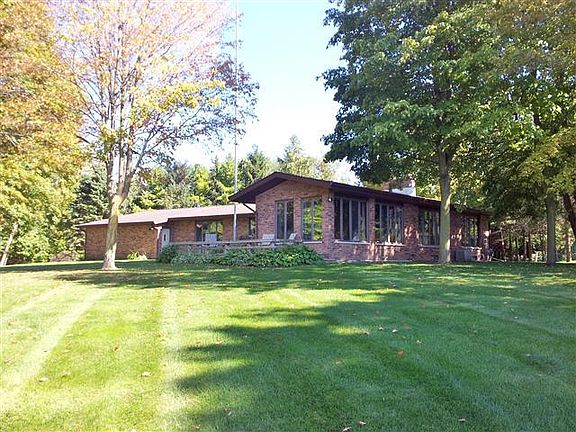 Beautiful Silver Lake and so close to town! This quality-built, solid brick ranch situated on a picturesque 1.1 acres with 120' of lake frontage features great windows, a massive brick 2-way fireplace between living rm and gathering area near the open kitchen, window-lined, tiled-floor sunroom over looking the lake, 3 bdrms/3.5 baths, an office/den off the massive LL rec room, 1st fl laundry, spacious deck, dbl closets in all the bdrms, and a big pantry off the kitchen. A beautiful oasis close to town!