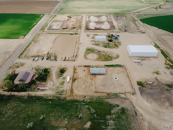 This exceptional 295 acre irrigated farm and feedlot spans two parcels and includes a 4-bedroom, 2-bath home with a wrap-around porch, mature landscaping, and a finished basement. Designed for cattle and hay operations, it features an 800-head feedlot, pipe roping arena, tack shed, irrigated grass trap, grain bins, a 120' x 65' hay shed (2023), calving barn, small platform scale, and 2,040 sf shop. The feedlot includes six pens, auto waterers, a hydraulic chute, cattle scales, and a semi-loadout. The North Farm has 130 acres, 119 pivot-irrigated, with a 15-acre-foot collection pond, 109 shares each of Catlin Canal and Larkspur Ditch, and both gravity and pump-fed water systems. It produces high-quality alfalfa and grass hay, up to 5 tons/acre annually. The South Farm also totals 130 acres with 100 pivot-irrigated acres, a 10-acre-foot collection pond, 120 Otero Canal shares, Catlin shares can be transferred from the North Farm through a 12” underground pipeline. Re-seeded to alfalfa in 2024. This Otero County irrigated farm is located off a paved road in the Swink School District.