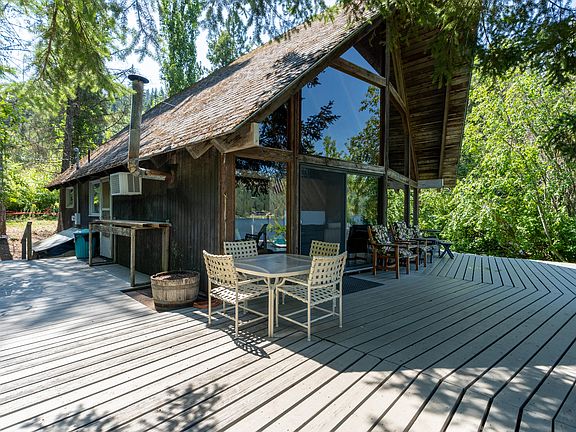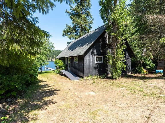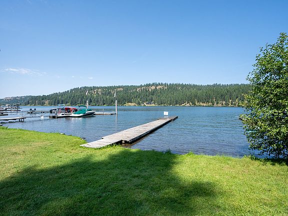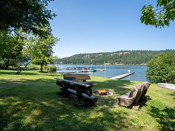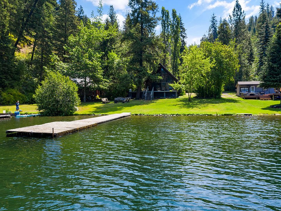 Lake Coeur d'Alene, Windy Bay, 88' frontage, 3+ bdrms, 2 baths, level lawn to water, 1501 sq ft, Chalet style seasonal cabin, seasonal road, boat dock. Knotty pine interior with open floor plan. Furniture included. great setting and cabin.