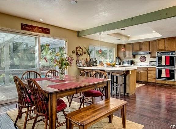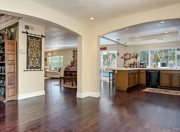 Enjoy privacy at this prime, end of cul-de-sac location. With views of the wilderness glen, pool and spa, the backyard is an entertainer's paradise! This home features an open floor plan with hardwood floors throughout. 3 bedrooms + a 4th space converted to a room with no closet, 2.5 bathrooms, 3 car garage. The home has been updated with new baseboards, hardwood flooring, can lighting, custom glass tile around fireplace in family room, scraped ceilings, new paint and walls were taken down in the kitchen & formal dining area to create a great room. The location of this home is unique, being that no other properties are situated at the end of the cul-de-sac. Wilderness trails right outside your front door; travel through Trabuco Canyon to the Pacific Ocean. This trail has picturesque mountain views, and the sounds of a flowing stream. Close to Lake Mission Viejo and in the award winning Saddleback Valley Unified School District!