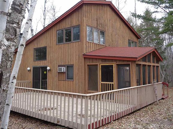 SANDY... GORGEOUS LAKE SUPERIOR BEACH....there is an expansive sandy beach with great views in all directions ..Lake Superior at its best....in a secluded wooded setting... This is a uniquely-designed home, with a main floor open floor plan, vaulted ceilings and a view to the lake...with a wood-burning fireplace as a focal point..complete with an upper level master bedroom and a third level den, accessed by the spiral staircase....... the screened porch and deck provides the opportunity to enjoy the woods and nature's sounds, with easy access from the living room patio door............. There are a main floor bedroom, full bath and utility room......the home is rustic, yet has a level of architectural sophistication.. You are within a mile of the charming Village of Ontonagon and 19 mi from the Porcupine Mt. State Park, known as The Porkies for all-season recreation.....hiking trails, skiing, cross-country skiing trails with lanterns, camping...........and wildlife abounds......... .... ....