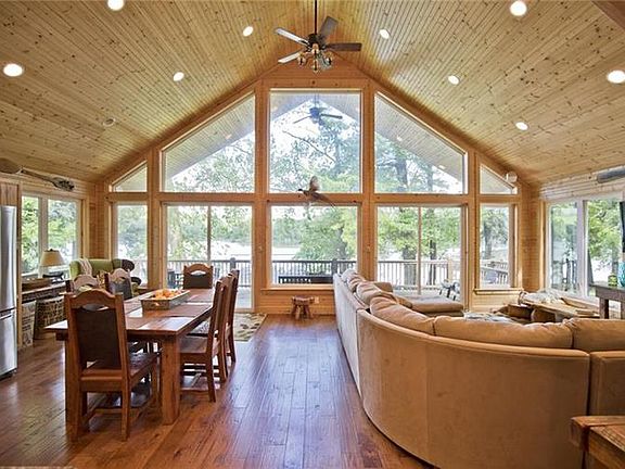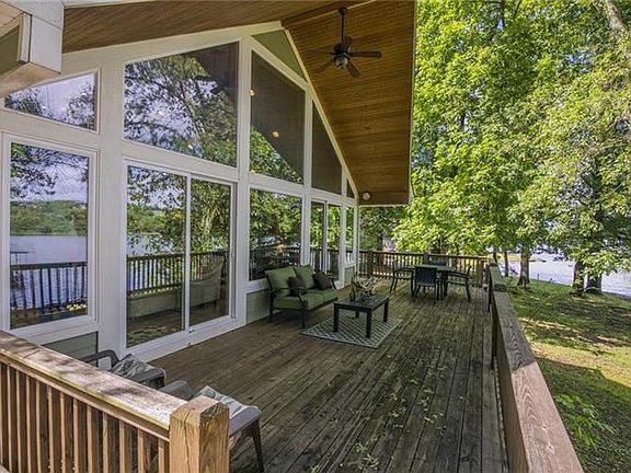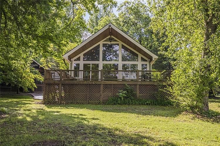 Living is easy in this impressive lakefront residence.This 3 bed 2 bath w spacious living space has cabin-like finishes.This home, built in 2013, has lofty ceilings and wall-to-wall windows that makes gazing at Beaver Lake possible from all areas.Glass doors lead out to deck which is perfect for indoor outdoor living!Private 2 slip boat dock is steps away.This home has a 720 sq ft bunk house w a kitchenette, laundry room, &full bath.Bunkhouse has a 500 sq ft covered deck w cable, outdoor kitchen, and hot tub.