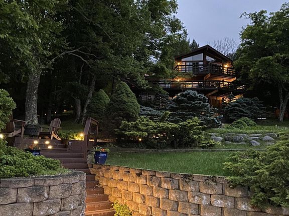 UNDER AGREEMENT OF SALE, ACCEPTING BACK UP OFFERS ONLY The Ultimate Lakefront Home With Panoramic Water Front Views Front and Side. Glass Fronts on All 3 Levels With Decks at Each Level Make The Most of The Waterfront Setting. A Professionally Appointed Gourmet Kitchen (2 Sinks, Massive Island ,Viking and Garland Stainless Appliances, Vegetable Sink,, 4 + Fireplaces Including in Primary Master Bedroom. Multiple Master Bedroom Suites Including a Private In-Law Suite With Private Entrance & Full 2nd Kitchen. The Expansive Private Dock Doubles as a Massive Waterfront Deck for Dining and Entertaining. (4 Levels of Living Space w/ Walls of Windows, Abundant Skylights, And Rustic Wood, Stone & Brick Finishes With T&G Wood ,Cathedral and Beamed Ceilngs., Beds Description: Primary1st, Beds Description: 2+Bed1st, Baths: 1 Bath Level 1, Baths: 1 Bath Level L, Baths: 2 Bath Lev 2, Eating Area: Formal DN Room, Beds Description: 2+BED 2nd