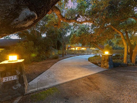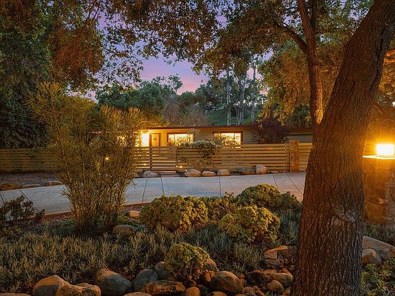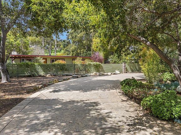 Welcome to this charming Ranch style home nestled among the trees on nearly half an acre. As you enter through the gates of this home you are met with a private courtyard, meandering pathways and a variety of mature shade trees. The living room of this three bedroom, two bathroom home has a large fireplace and is open, spacious, and leads you into the dining room. The gleaming hardwood floors carry throughout the house. With the large windows and sliders, you will find yourself drawn to the outside. The perfect mix of indoor and outdoor living and a large deck off the entire back of the house allows you relaxation time for bird-watching, dipping in the hot tub, or just enjoying the sound of the peaceful pond. A perfect location with an easy drive to Ventura, Santa Barbara or downtown Ojai. This property is fully gated and private.