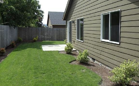 New construction 3 bed 2 bath one level home with a living room and combo dinning & family room.the kitchen sports custom cabinets and tile back splash. Vaulted living room. fully landscaped w/ ung irrig. and partial cedar fenced. 90% gas furnace. w/ builders home warranty.