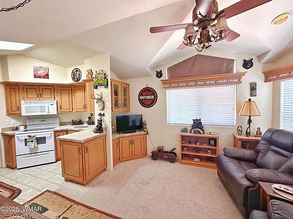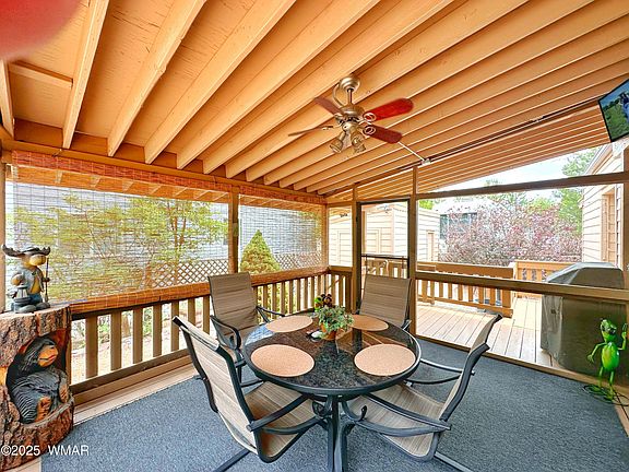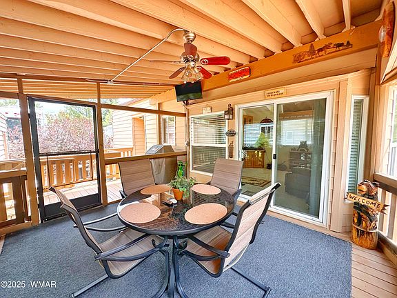 Great opportunity to enjoy the ''cool summer'' in the White Mountains with this fully furnished 1bd/1ba in the coveted Pinecrest Lake community! Step into a spacious living room, followed by a bright kitchen which features plentiful cabinets, countertops and storage. Central heat and A/C. Step outside to a screened-in deck which includes a TV and ceiling fan which makes it great for entertaining. Exterior boasts a metal roof which offers peace of mind and a storage shed which includes the washer/dryer and refrigerator. Low HOA covers water, sewer, roads and community activities. Steps away is the Sitgreaves Nat'l Forest. Fiber internet now available. Schedule your private showing today!