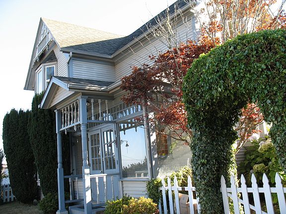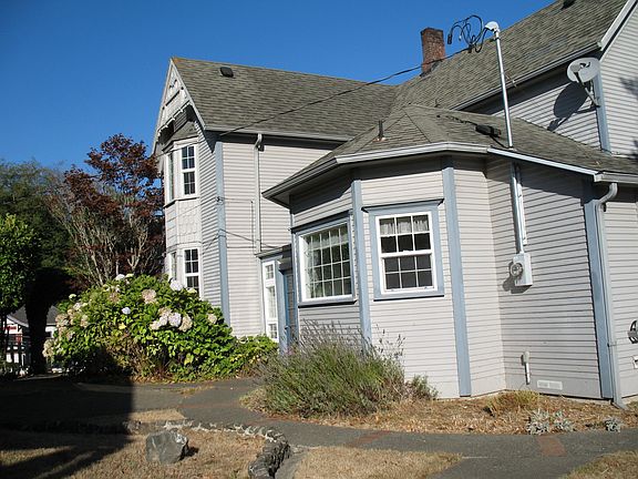 Lovely Bay Views from this charming and updates 1908 Victorian very close to downtown North Bend. Large formal living room and ornate formal dining area. New kitchen with center island. Bay windows, classic staircase and moldings and other Victorian details throughout. Additional storage, mud room and 2 sun porches. Fenced yard with gardens and deck with great bay views.