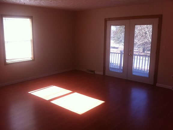 Great 3 bed, 2 bath split foyer style home with finished basement. 2 bedrooms, full bath, kitchen, living room, and dining area on the main level. Basement includes family room with pellet stove, bedroom, full bath and laundry (washer & dryer are NOT included). Water softener, 1 car garage, paved streets, well established neighborhood. Large fenced back yard. Deck on side of home, balcony off living room. Heating/cooling system new in 2011. Home sets within the Waynesville city limits. New laminate flooring installed Oct 2013 on the main level (except bathroom). Fresh paint in living room, entrance, hall, kitchen and dining area. 1865 total sq ft, 1665 living sq ft. TWO pets allowed (dogs or cats), small to medium. $300 Non-refundable Pet Fee PER PET.