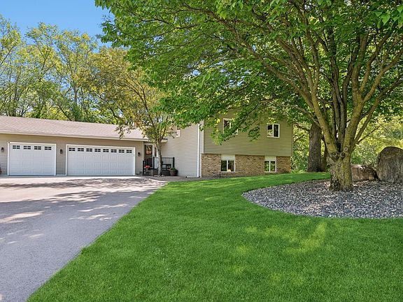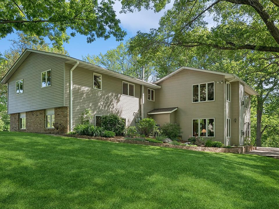 Beautiful private setting and gorgeous views throughout the home! Backyard entertaining and play space including a pond to enjoy! So many wonderful updates, most done in the past 5-6 years! Updated Kitchen and Bathrooms, flooring, fixtures, interior doors, garage doors, driveway, front steps, retaining wall, well pump, attic insulation, mechanicals and more(see supplement). Wonderful open floor plan includes Great Room with vaulted ceiling and gas fireplace, beautiful Kitchen with breakfast bar, spacious informal Dining area. The upper level also includes convenient Laundry, 2 Bedrooms and 2 updated Bathrooms. The lower level features a large Family/Amusement Room with gas fireplace, 3 additional Bedrooms, gorgeous 3/4 Bath, Sunroom, and additional storage space. Located in #194 Lakeville schools and convenient access to highway 35. Truly move in ready, a must see!