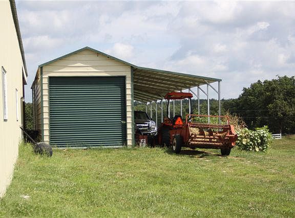 A Horse Enthusiast's Dream Property!! This 14.25 Acre m/l property features very nice and functional 2 bedroom, 1 bath living quarters above an exquisite horse barn! The barn has 5 permanent stalls with Priefert feeders, automatic waterers, fans, fly sprayers, blanket racks and Forida floors. There is also 2 portable stalls, a wash rack w/hot & cold water, tack & feed room, 1/2 bath with extra washer & dryer and is climate controlled. Barn also includes a 60 X 90 enclosed, heated arena w/lights, mirrors & sprinkler system. Land has 4 paddocks w/water tanks, and 1 pond. Hay barn can accommodate 400 square bales. In addition there is a 80 X 120 outdoor riding arena w/vinyl fencing & a gazebo. Everything you are looking for is here in this amazing horse property!