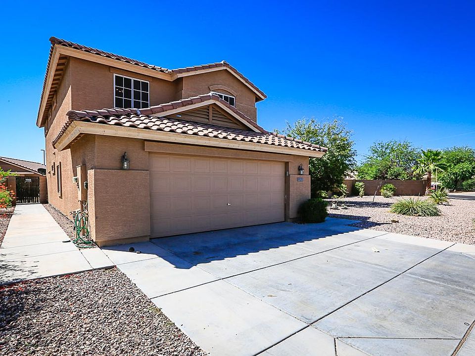 Do not miss this fantastic 4 bedroom/ 3 bathroom home with a sparkling pool. Enter and find stylish hardwood flooring, vaulted ceilings, and ceiling fans. The open kitchen comes complete with all appliances including refrigerator plus a kitchen island, perfect for gatherings. Ascend the stairs to a spacious loft. The master bedroom includes a dual sink vanity, large walk in closet, and a private bathroom. You will love the huge backyard oasis with a covered patio plus a wonderful private pool and low maintenance desert landscaping! Conveniently located near the I10 for easy access. Contact us today! Price: $1350 Per Month Security Deposit: $1350. Cleaning Fee: $250. Pet Fee: $250 Pets required lessor approval. Pool service included.