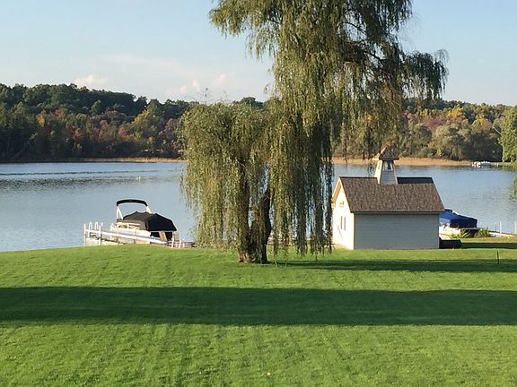 Incredible opportunity to get on All-Sports Tamarac Lake that is 125 acres in size and just a short drive from Chicago or Detroit! Arguably one of the nicest lakes in all of SW Michigan! This Lake is a local treasure and is known for incredible fishing and boating, and is also Private for the most relaxing time of your life! With over 180' of water-frontage this immaculate 4 bed, 4 bath home sits on over 1 acre and has incredible views of the water! The living area has a soaring knotted pine ceiling, and huge windows for immaculate views. The main level master-suite is sure to please with a large walk-in closet, private bath with a jet soaking tub, and again incredible views and private balcony access.The extremely large kitchen offers tons of cabinet and counter space. Another full bath,
