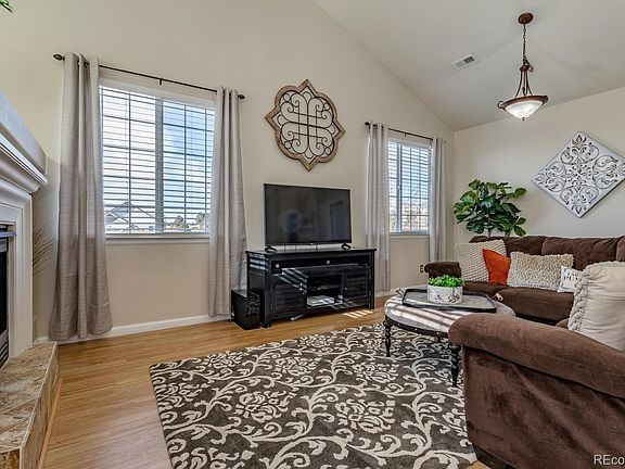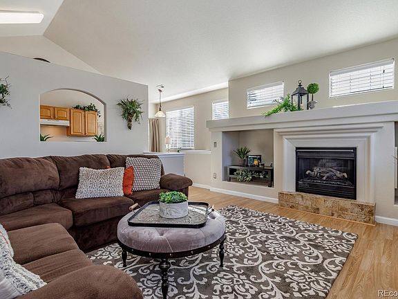 Super opportunity in Homestead at Saddle Rock! Light and bright vaulted living room with gas fireplace! Sunny kitchen with abundant cabinets and countertops, and an eating space with access to the balcony! The vaulted master suite features a walk-in closet and private full bath with double vanities! Large secondary bedroom! Both baths have tile floors, and the living room and both bedrooms have Pergo flooring! Great location near the Saddle Rock Golf Course, Southlands shopping and entertainment, DTC, DIA, and E-470! Enjoy Saddle Rock amenities! Don't let this one get away!