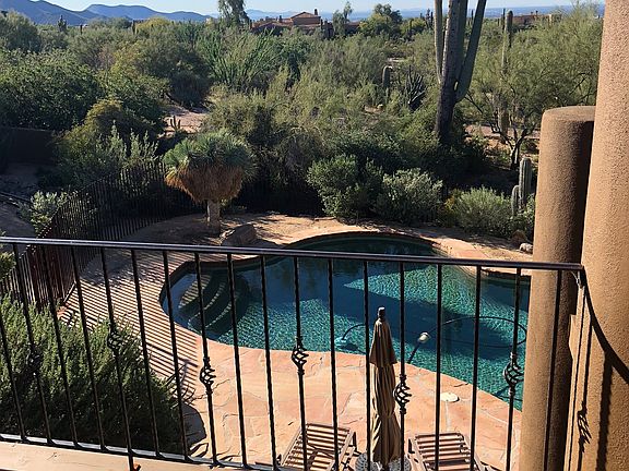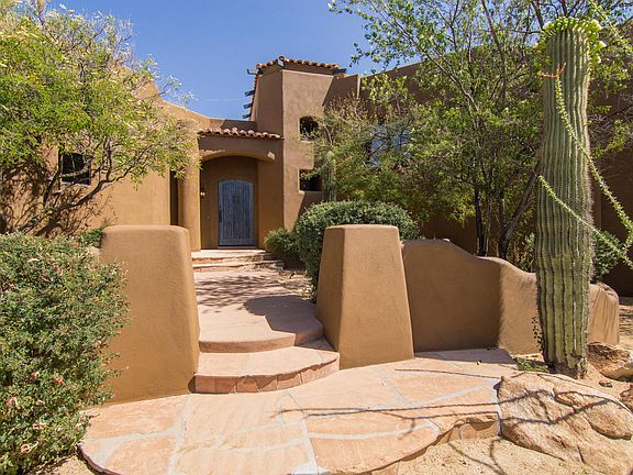 Be prepared to fall in love with this spectacular Southwest Contemporary home with panoramic mountain and city light VIEWS!!! Situated in beautiful North Scottsdale, Pinnacle Peak Vistas is located near popular shopping centers, fine dining restaurants, beautiful hiking trails and entertainment. The property sits on almost an acre at the end of a quiet cul-de-sac with NO HOA!!! New interior and exterior paint throughout, upgraded kitchen fixtures, brand new refrigerator and alarm system replaced in 2017. (Please see updates and repair list in documents) Main level includes guest bedroom, guest bathroom, en-suite bedroom, living room, formal dining room, powder room, large great room and spacious kitchen. The kitchen boasts a large center island and butlers pantry with abundant storage and wine cooler. The stairs up to the second story are made of stunning, 115-year-old, reclaimed barn wood (extra in the garage to add to the house!) The upper-level includes a large Master Suite with a cozy fireplace and an extra-extra-large, custom-built, walk-in closet. Relax in the elegant master bathroom in the stand-alone soaking tub with more fantastic mountain views, separate walk-in shower, dual vanities, Travertine tile and granite counter-tops. Right off the master is an office/den also with a fireplace, wet bar and en-suite bath. Office can easilly be converted into a 4th bedroom. Both the office and master have deck access that over- look the backyard pool and more VIEWS!!! Home is situated near a wash with an abundance of wild life traveling through daily. The desert landscaping that surrounds the property was designed by a master gardener costing over $100K and has been meticulously maintained! Beautiful light features added throughout to enjoy those cooler summer nights by the pool. This home is a MUST SEE!!! Schedule your private showing today!!!