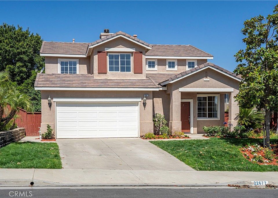 Great 2-story residential property at 22677 Canyon View Dr., Corona offers a fresh and inviting atmosphere. Notable features of this residence include new interior paint new carpeting, plantation shutters, dual pane windows, cathedral ceilings, and recessed lighting, all contributing to a comfortable and well-lit living environment. Step into the spacious living room upon entering, providing a warm welcome. The kitchen is equipped with stainless steel appliances, including a sink, dishwasher, microwave, and stove. It features a center island, allowing for convenient meal preparation, while offering a delightful view of the backyard. Adjacent to the kitchen, the family room boasts a cozy fireplace and sliding door access to the backyard, creating a seamless indoor-outdoor flow. Additionally, the main floor presents a versatile den or office area and a convenient half bathroom. Upstairs, the primary bedroom is highlighted by wood flooring, a walk-in closet and a private bathroom with double sinks, a separate shower, and a spacious tub. There are 3 additional good sized bedrooms and a full hall bathroom upstairs. The backyard and side yard offer ample room, while an alumawood covered patio provides shade and a pleasant outdoor sitting area. Completing the outdoor appeal is a lush green grass area, adding a touch of natural beauty. The garage provides direct access to the home and boasts epoxy flooring, adding both convenience and style. Don’t miss out on this great opportunity!