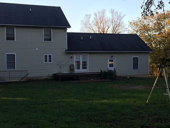 Ten year old house sits on one acre of property. Large private, partially fenced, backyard. Two car garage. Full unfinished basement. Two zone central heating/AC. Master bed and bath. Great commuter location. Large open kitchen and dining area. Family room and living room. Front porch with great sunset views! Rent due first of each month. Tenant pays all utilities. Families of no more than 5 occupants.