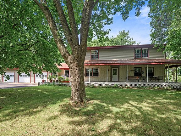 Experience the charm of this lovingly maintained hobby farm, where beauty shines both inside and out. The lovely farmhouse boasts a wrap-around porch and durable steel siding. The main floor features a bedroom, bathroom, and office, while the upper level offers four additional bedrooms and two baths. Spanning 20 acres, the property includes vinyl and electric fencing, a pond, and a homestead with a sprinkler system. Equine enthusiasts will appreciate the indoor and outdoor arenas & 6 box stalls.