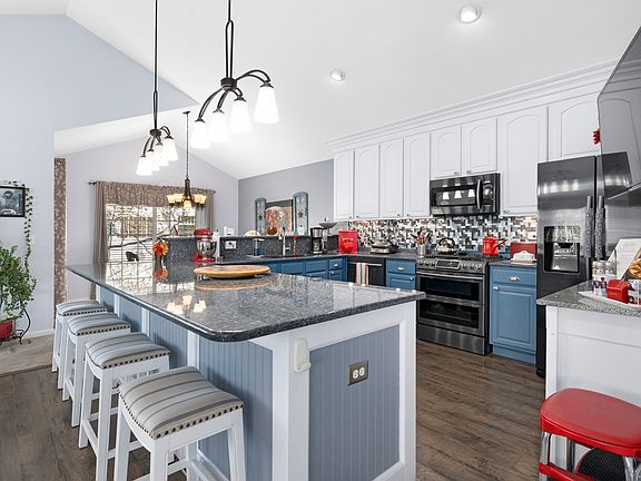 Stunning meticulously maintained 2 bedroom + loft end unit townhome with open floor plan is perfect for entertaining. The kitchen which includes seamless granite counters and breakfast bar, tile backsplash, black stainless appliances, split oven, touchless kitchen faucet, white and gunmetal blue kitchen cabinets with crown molding and pull-out drawers, water resistant laminate flooring, recessed, pendant, and under cabinet lighting. The living & dining areas have an abundance of windows and vaulted ceilings that fill the space with lots of natural light. The dining area opens to the private deck. The gorgeous master suite has a display ledge, vaulted ceiling, and large private upgraded bath with decorative tile accents, dual sinks and medicine cabinets, walk-in shower with body sprays, oversized jetted tub, recessed lighting, and slate tile plank flooring that all add to the luxury feel of this home. The nice sized 2nd bedroom along with the bonus loft area are also found on the main floor. The family room on the lower level is a great space to relax or gather. The look out windows brighten up the space. The second full bath and laundry room are also found on the lower level. The NEST Protect Smoke and CO2 alarms and Ring doorbell are some of the modern features. There are many mechanical updates. AC 2022, Furnace 2022, Garage Door Opener 2022, Water Softener 2019, and Water Heater 2019. Close to shopping and restaurants. Seller would like to close in the middle of February.