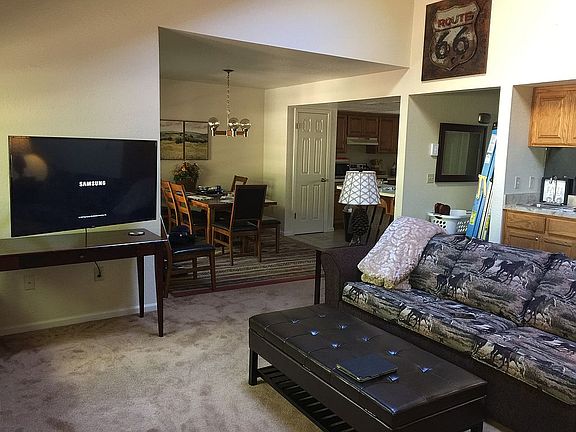 Townhouse in the Pine Lake Meadows community. Price includes all the furniture , home furnishings and decorations seen in the home pictures. The 2 Large bedrooms have closets and the other 2 have a bunk bed ; and daybed setup. Smart TVs in all bedrooms, with a new 48" Convex Screened TV in the Living Room. All appliances also included, New Frig, New Washer, New Mircowave, Elec. Stove and Elec. Dryer. Recently remodeled River Rock wood burning fireplace, the crawl space area has been treated with sprayed foam installation, and dual pane windows. Also, has four locking owners' cabinets for private storage. It is move in Ready!!