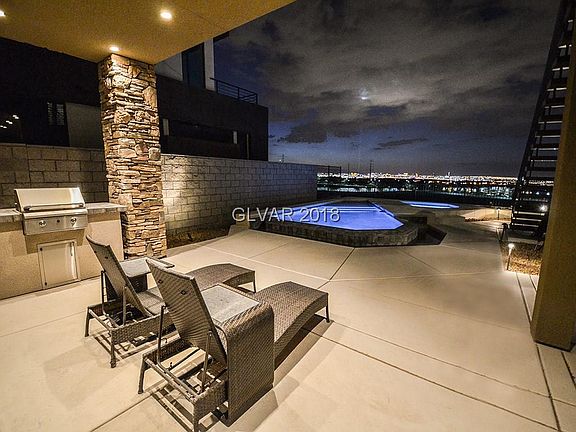 Luxury Estate Former Model in Stunning Sky Terrace PRICED To SELL Quickly! $300K UnderValued!Immaculate, Move-In Ready!Enjoy Panoramic views of spectacular sunsets,LV Strip lights & adjacent mountains from every room inside & outside making Indoor/Outdoor Living at its Finest.Gated features Huge great room,family room,designer kitchen,dining room,An entertainer's dream,THEATER ROOM; Elevator Option;every bedroom & room has access to the pool/spa!