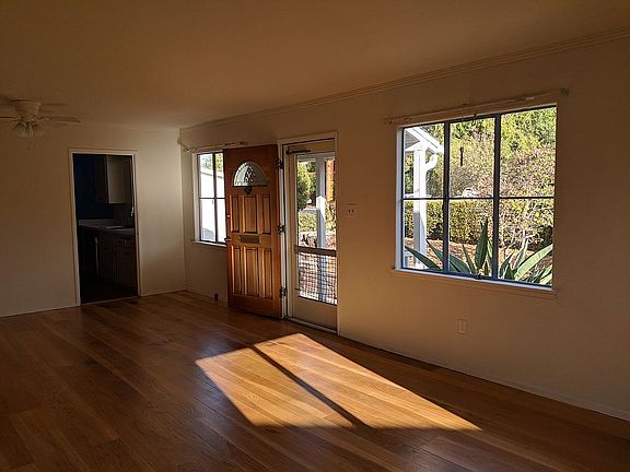 Updated spacious home with a huge backyard in a family-friendly and quiet neighborhood. 2 bedrooms and a bathroom with a tub, and a larger bedroom or office space with an external door and a private bathroom with shower, all new or updated. Open living room with dining area. The kitchen is equipped with a gas stove, dishwasher, refrigerator, and lots of storage. Washer/dryer in the house. Hardwood floors and high ceilings. The backyard has mature fruit-bearing trees and is shared with another small unit (a 1-bedroom unit located beneath the main house with a private entrance). Amazing commuter location - convenient highway access and close to Bart. 5-minute drive to popular farmer's market, restaurants, bars, shopping, and parks. Contact us to schedule a viewing.