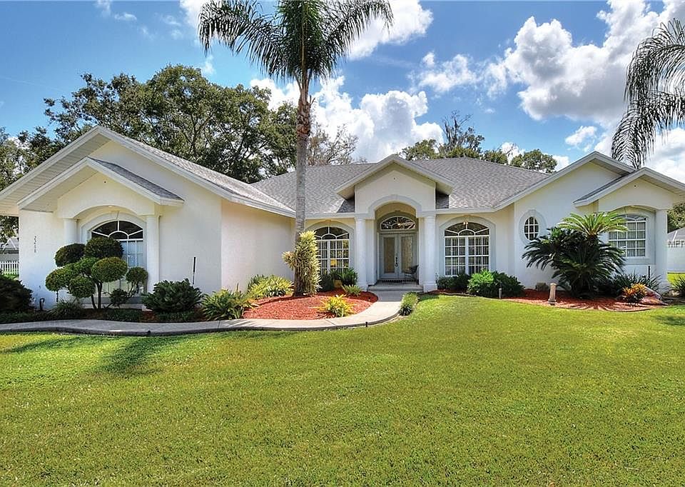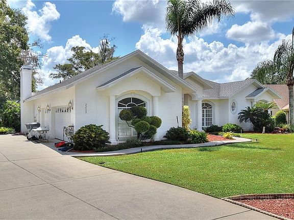 Lowest price in this desirable BLOOMFIELD HILLS EXECUTIVE TYPE COMMUNITY. There are some executive homes in this community valued EXTREMELY HIGHER than this property. This is an ERNIEWHITE CUSTOM BUILT HOME offers a 3 bedroom, 2 bath and a separate OFFICE/DEN WITH BUILT IN SHELVING. All the bedrooms have large walk in closets. This beauty sits on over 1/2 acre lot located on a cul-de-sac. Three car garage offers more than enough room for three cars and a side entry door, additional working area and large utility sink. Huge master suite offers an additional 10 x 10 sitting area with his/her closets. Master bath with dressing area, dual sinks, WALK IN SHOWER WITH DUAL SHOWER HEADS, JACUZZI TUB. Gas fireplace, built-in's throughout the house. BOSE SURROUND SOUND SYSTEM located in the family room, intercom system, large inside laundry room with utility tub. 10' ceilings, tray ceilings, community offers sidewalks for walking/jogging, tennis courts. Large screened and irrigated area for a green thumbed person to grow plants and flowers. Large beautiful trees. EASY COMMUTE TO ORLANDO OR TAMPA. Please click on the TOUR BUTTON TO SEE THE VIDEO AND AERIAL OF THIS HOME