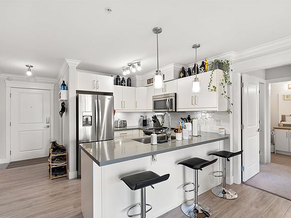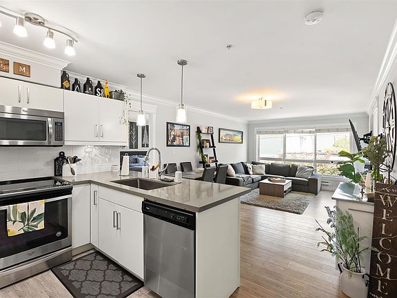 Welcome to this 2 bed 2 bath home steps away from the historic downtown Port Coquitlam. This very well-maintained home features a gorgeous kitchen with stainless steel appliances and quartz countertops with under-mount sinks throughout. Master bedroom with 4pc ensuite and walk-in closet. Living room with huge windows, crown moulding and walk out to the balcony for a morning coffee or weekend BBQ. Steps away from the West Coast Express, shops, cafes, restaurants, schools and parks. You can enjoy a relaxing stroll along the Coquitlam River via the Traboulay PoCo Trail. 2 Parking included. Don't miss this great opportunity!