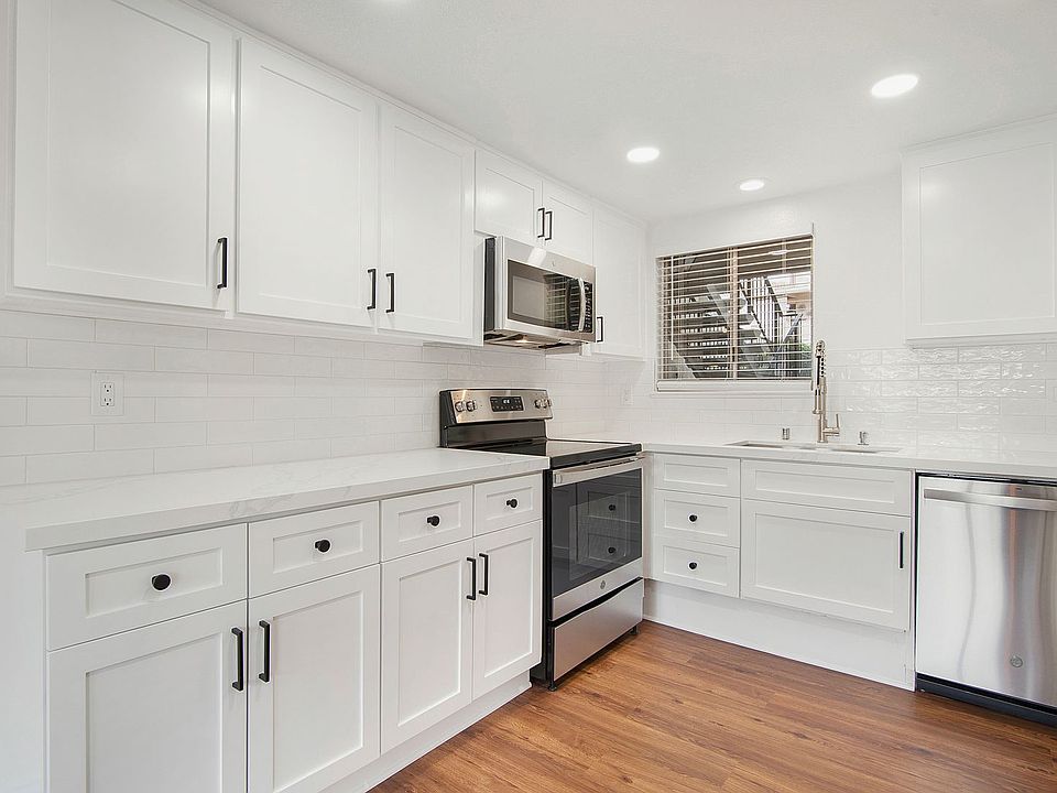 Newly Remodeled MODERN Condo home available in Laguna Woods!-a 55+ active adult community.! Beautiful Castilla Model! Remodeled kitchen w/quartz counters and backsplash, matte black hardware, and all new appliances. Laminate textured wood flooring throughout. ALL appliances included plus in-unit washer/dryer!. Spacious private balcony with mountain views. Open concept-layout with natural light. Large primary bedroom suite bathroom with tub and large 2nd bedroom with shower in the bathroom. Enjoy all the amenities of Laguna Woods Village, 7 clubhouses, 27 hole golf course, and a 9 hole par 3 course. Tennis, lawn bowling, shuffleboard, hobby workshops and arts, garden center, card game rooms, billiards, 2 fitness centers, horse stables, theater, and community library. Conveniently located near clubhouse 4, craft workshops, pool, and shopping mall.