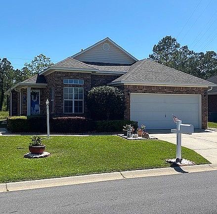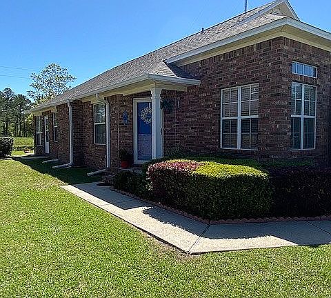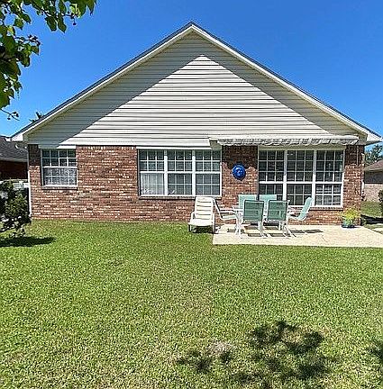 Very nice brick house with open floor plan in a very desirable quiet neighborhood, yet close to Foley, Gulf Shores, and Orange Beach. House features luxury vinyl plank flooring in kitchen, living room, dining area, and sunroom, ceramic tile in bathrooms and laundry room, and carpet in bedrooms. Living room has electric/gas fireplace and vaulted ceiling. Master bedroom has large double windows, and turtle back ceiling. Master bathroom has garden tub, separate shower, double vanity, and private toilet. The guest bedrooms are nice sized. Guest bath has a shower-combo. Kitchen has a breakfast area, beautiful oak cabinets, lots of counter space, microwave (2020), dishwasher (2021), and garbage disposal (2022). Peaceful heated and cooled sunroom with serene views of trees, fields, and sky and a door that leads out to an open patio with a retractable awning. Two car attached garage. Home has a new roof with ridge vents installed in 2020. The central air is equipped with Reme Halo air purifier. Beautiful level, landscaped lawn with irrigation system. All appliances, including washer and dryer remain, with some furnishings negotiable. Owners have access to a large clubhouse with nice pool, pickleball court, and nice fishing lake.
