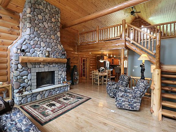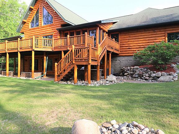 Unique and rare Log Style Home built in 2007 on 2 acres with 200 feet of frontage on Rice Lake within 6 miles of Grand Rapids. This large 4,031 square foot home boasts 12x4 Log Siding on both exterior and interior making it look like a true Log Home without the real log issues. It is built on a 2x6 Frame, has 3 Fireplaces, 2 gas and 1 wood, 5 bedrooms, 3 baths with a vaulted Master Suite. There are 2 large living areas, one with a recreational area with Pool Table and Bar. The Loft is approximately 500 square feet offering views of lake and woods with Birch Hardwood Floor. Main Level has Oak Hardwood, with laundry room, master suite, kitchen, dining room and an oversized heated 3+ stall attached garage. The lower level has Hickory hardwood floors in living area and 3 carpeted bedrooms. The lot is well landscaped, new Floating Boat Lift and floating Dock System added in 2019. Home has an efficient forced air heating system with Dual Fuel. A sand court for beach, volleyball and Bocce with a fire pit rounds out this rare and unique log home. Owner/Agent. Dan (218) 966-4501